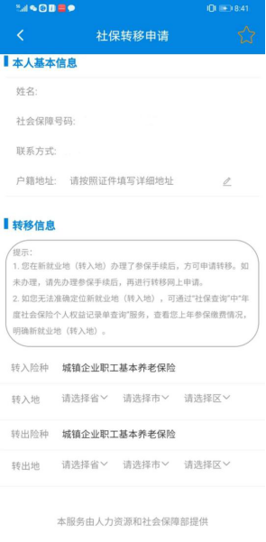通过济南人社APP、支付宝、“济南社保”微信公众号或其他电子社保卡服务渠道办理,点击“电子社保卡”,选择“社保关系转移”,填写个人信息,提交申请。